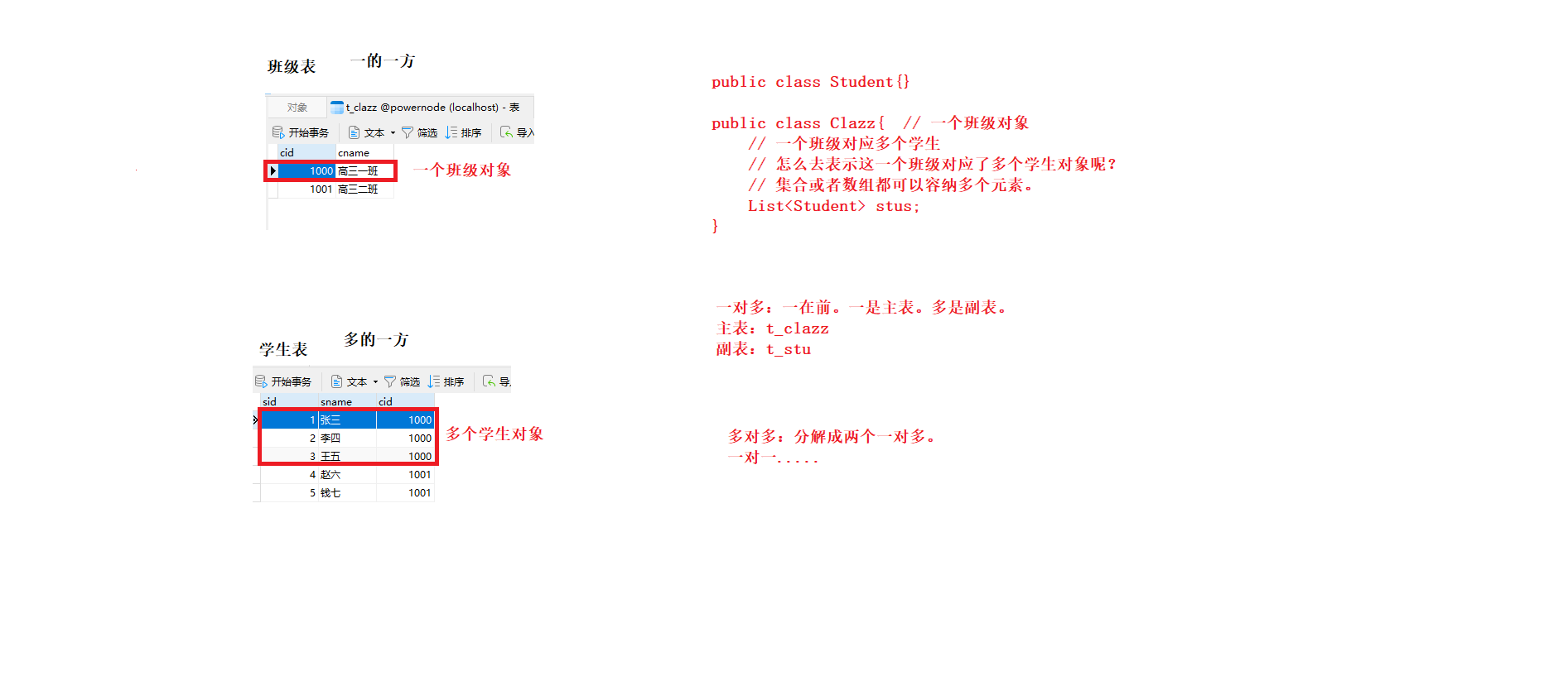 在内存设计上, 一个班级有多个学生, 所以班级是一,学生是多;